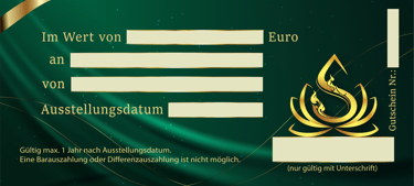 Verschenken Sie Freude mit unserem Geschenkgutschein! Perfekt für jeden Anlass, von Geburtstagen bis hin zu besonderen Feierlichkeiten. Machen Sie Ihren Liebsten eine Freude – sie entscheiden selbst, wie sie ihn einlösen möchten!